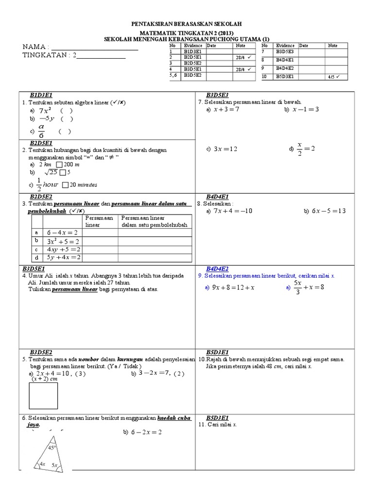(6) persamaan linear (linear equations i, ii). Maklumat yang disediakan di dalam nota padat matematik tingkatan 1 kssm ini menepati segala keperluan pelajar untuk membuat persediaan menghadapi peperiksaan dan memperoleh kelulusan yang cemerlang. X dan y disebutnya variabel a, b. Ramai pelajar menghadapi masalah menyelesaikan persamaan linear dalam satu pemboleh ubah. Video ini disediakan dengan menyelit masuk 2 watak kartun yang comel supaya anda tidak bosan semasa mempelajari topik ini.