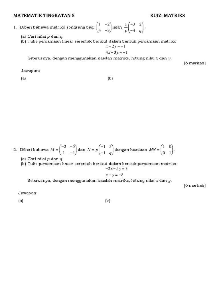 Tulislah sesuai bentuk umum yang telah disebutkan dalam formulir. (6) persamaan linear (linear equations i, ii). Buku a berharga rm18 dan buku b berharga rm 3.50 lebih dari buku c. Sistem persamaan linear tiga variabel. Ax + by = c px + qy = d keterangan :
